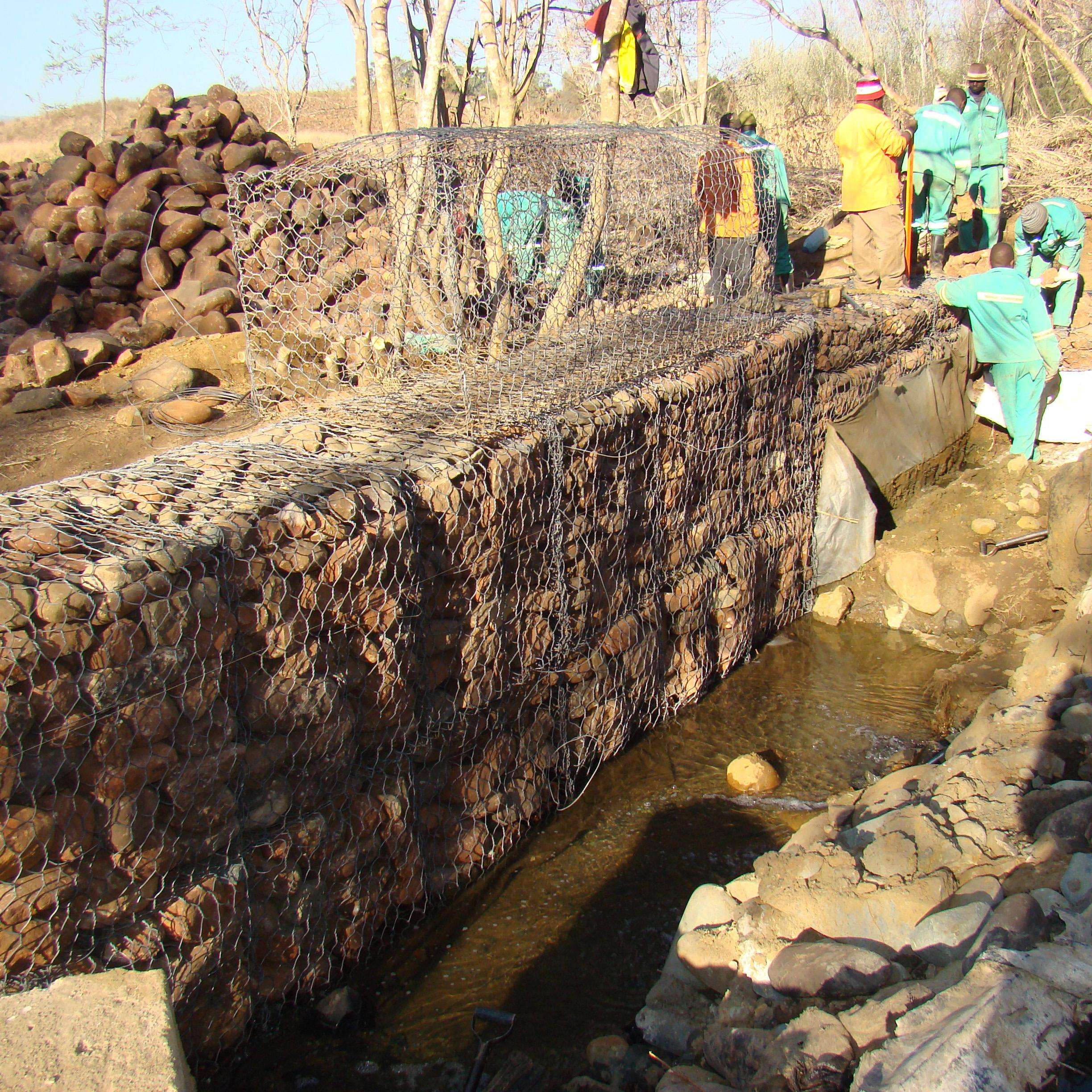 格賓網(wǎng)是金屬線材編織的角形網(wǎng)(六角網(wǎng))制成的網(wǎng)箱,使用的金屬線徑是根據(jù)六角形的大小而不同.如果是金屬鍍層的金屬線,則使用線徑為2.0mm到4.0mm的金屬線,如果是PVC包覆的金屬線編織的六角網(wǎng),則使用外徑為3.0mm到4.5mm的PVC(金屬)線.外框邊緣的線則使用比六角網(wǎng)線粗一號(hào)的線。低于50公分了統(tǒng)稱墊,或是護(hù)墊,高于50公分的稱為籠。