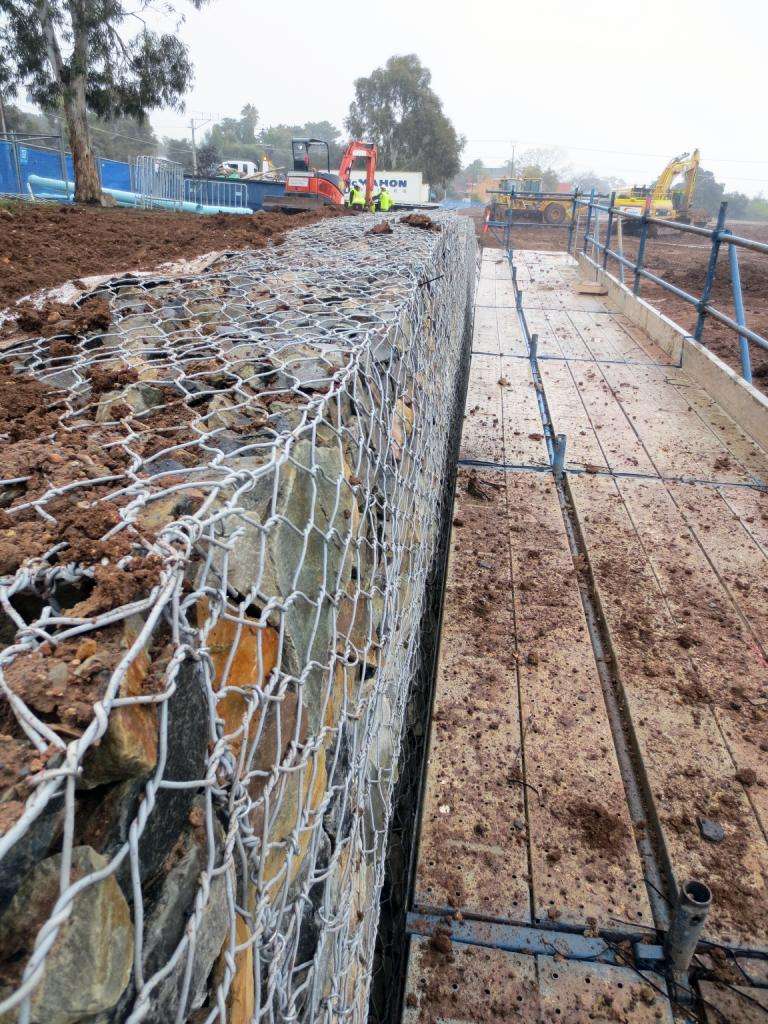 三、格賓網(wǎng)擋土墻,是格賓網(wǎng)籠子層疊堆砌的擋土建筑物。格賓網(wǎng)箱擋土墻的構(gòu)件是在網(wǎng)箱內(nèi)部填充大小比例相當(dāng)?shù)氖瘔K,這樣就有一定的孔隙率,由于石塊之間的間隙,可以排出砌體后面的土壤和護(hù)坡下面土層的水,這樣就降低了水位,減少墻體后和坡下的地表水壓力,水及時(shí)排出降低了擋土墻被破壞的幾率,這樣擋土墻的壽命會(huì)大大的延長(zhǎng)。同時(shí)墻體網(wǎng)箱是鐵絲網(wǎng)制作的籠子,能夠有一定的變形,況且,石塊與石塊之間,也可以滑動(dòng),所以擋土墻的變形能力也能夠緩沖突發(fā)的外力。