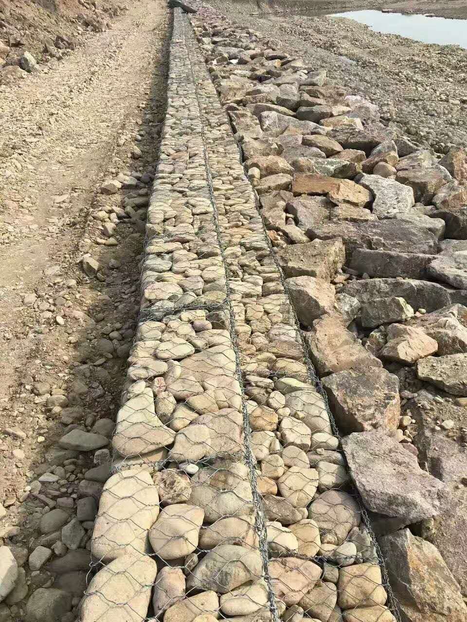 4、使用石籠網(wǎng)具有施工快,當基礎開挖完成后石籠建筑物即可一次建成。施工中還能避免在河道和海灘建筑圍堰,減少排水費用。在無水地區(qū)施工,經(jīng)過鋪網(wǎng)、填石和連接加固即可完成。在江河沿海地區(qū)進行水下施工時,可事先裝好石籠網(wǎng),然后吊裝安放就位,或者用船運至預定地點拋石就位截流工程可采用此法。