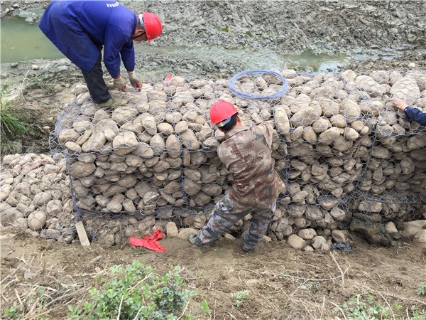 石籠網(wǎng)箱在施工現(xiàn)場經(jīng)石頭填充,構(gòu)成具有柔性、透水性及整體性的結(jié)構(gòu), 如擋墻、河道襯砌、堰等支擋的防沖蝕工程。