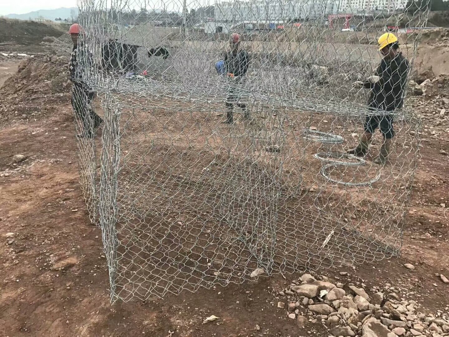 賓格網(wǎng)防護(hù)體可按設(shè)計(jì)要求,進(jìn)行工廠化生產(chǎn)制作出半成品,施工現(xiàn)場(chǎng)僅需組裝定型,灌充填料,操作簡(jiǎn)便,尤其是受氣候因素干擾小,適宜于機(jī)械化施工。