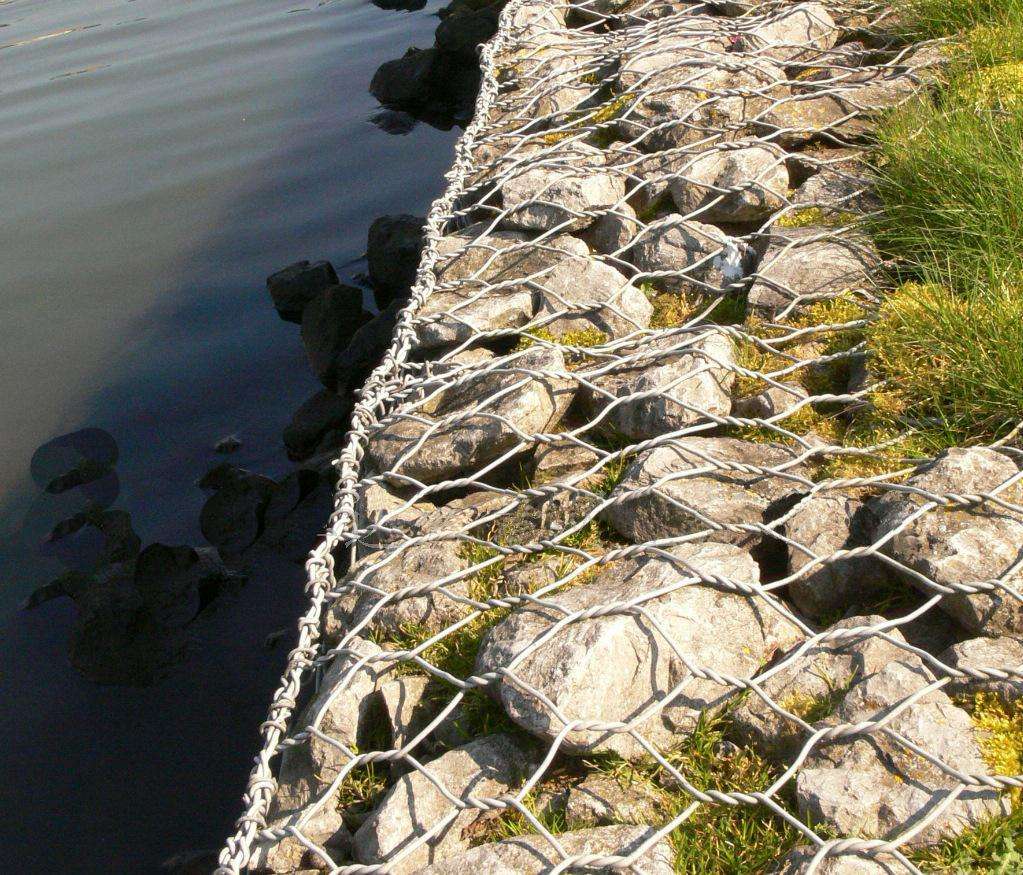 雷諾護(hù)墊也叫石籠護(hù)墊,格賓護(hù)墊,是指由機(jī)編雙絞合六邊形金屬網(wǎng)面構(gòu)成的厚度遠(yuǎn)小于長度和寬度的墊形工程構(gòu)件。雷諾護(hù)墊中裝入塊石等填充料后連接成一體,成為主要用于水利堤防、岸坡、海曼等的防沖刷結(jié)構(gòu),具有柔性、對地基適應(yīng)性的優(yōu)點(diǎn)。