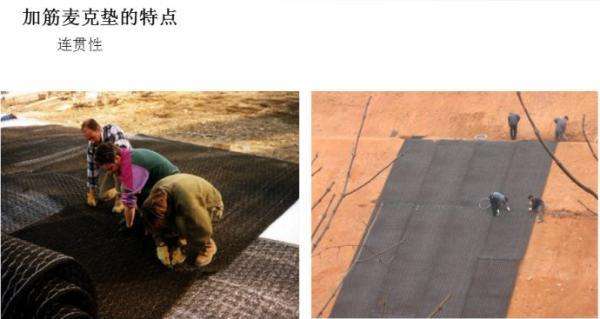 3、生態(tài)性,加筋麥克墊之間充滿了空隙,有利于植物根系的發(fā)育,營造良好的生態(tài)環(huán)境。即使不灑泥土,隨著時間的推移,填料之間的空隙也會自然地長出一些草本類植物,形成自然的生態(tài)環(huán)境。