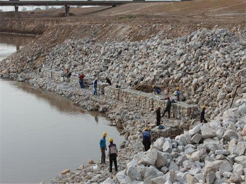 5.放置 綁好后,用機器小心將石籠網一個一個或兩個兩個的吊放到恰當位置。為了保證質量,石籠網縫邊、組裝時應用較粗的邊絲和綁絲。