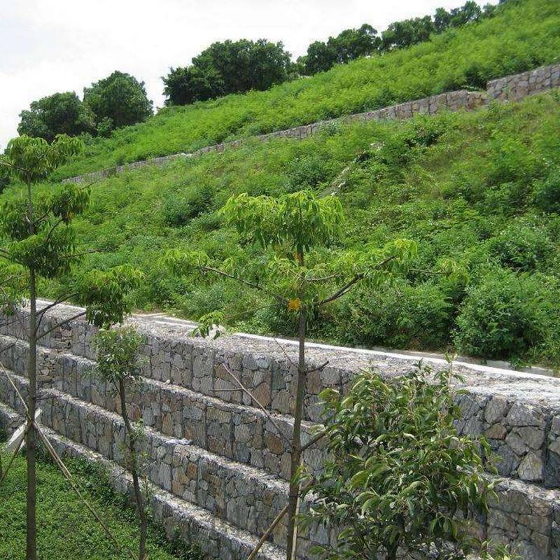 石籠網(wǎng)結(jié)構(gòu)的易組合性以及顏色的多樣性,可以為我們提供各種各樣的結(jié)構(gòu)造型設(shè)計(jì),滿足不同區(qū)域的景觀要求。同時(shí)結(jié)合植草坪、種花木呈現(xiàn)給我們的將是一道綠色的擋墻或護(hù)坡。