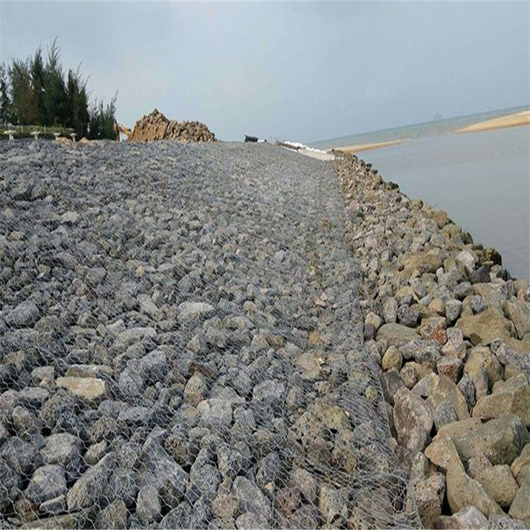 雷諾護(hù)墊是指由機(jī)編雙絞合六邊形金屬網(wǎng)面構(gòu)成的厚度遠(yuǎn)小于長(zhǎng)度和寬度的墊形工程構(gòu)件,其中裝入塊石等填充料后連接成一體,成為主要用于水利堤防、岸坡、海曼等的防 沖刷結(jié)構(gòu),具有柔性、對(duì)地基適應(yīng)性的優(yōu)點(diǎn)。