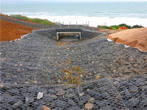雷諾護(hù)墊是指由機(jī)編雙絞合六邊形金屬網(wǎng)面構(gòu)成的厚度遠(yuǎn)小于長度和寬度的墊形工程構(gòu)件,其中裝入塊石等填充料后連接成一體,成為主要用于水利堤防、岸坡、海曼等的防 沖刷結(jié)構(gòu),具有柔性、對地基適應(yīng)性的優(yōu)點(diǎn)。