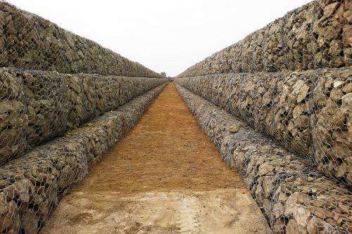 綠濱墊主要用于防洪防汛工程。起初人類直接把石頭扔入河里,河流湍急,石頭容易被沖走,后來用裝著石頭的袋子扔入河中,袋子不太結(jié)實,后來演變成為編制型的石籠網(wǎng)。