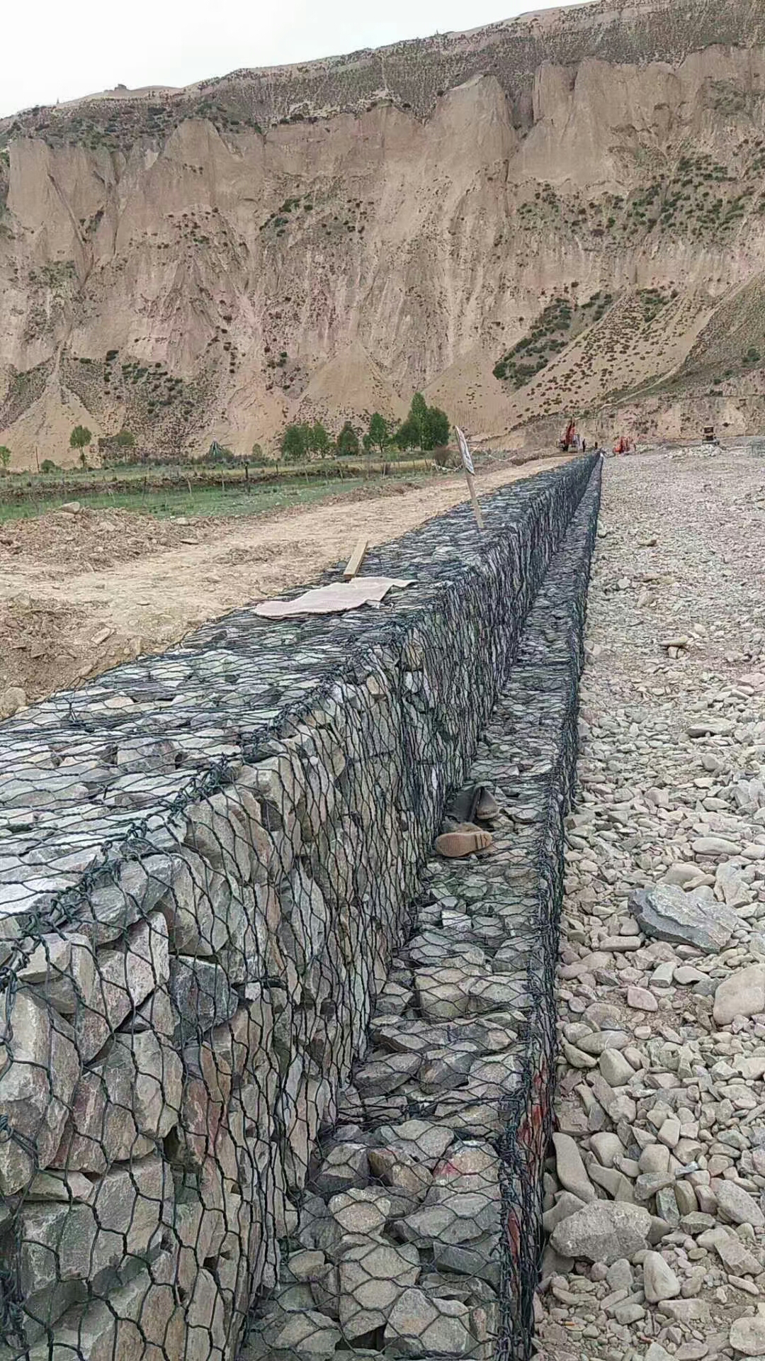 5.放置 綁好后,用機器小心將石籠網(wǎng)一個一個或兩個兩個的吊放到恰當位置。為了保證質(zhì)量,石籠網(wǎng)縫邊、組裝時應(yīng)用較粗的邊絲和綁絲。