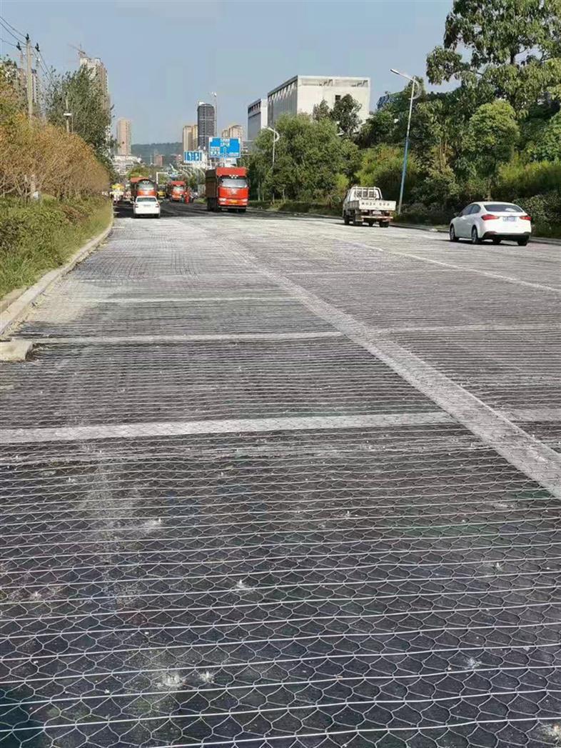 路面加筋網(wǎng)材質(zhì):熱鍍鋅鐵絲、鋅鋁合金絲