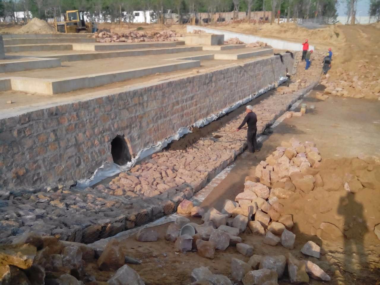 5非常優(yōu)越的透水性能。因填料之間大量空隙的存在為防護(hù)體前后水體的交換發(fā)明了條件。當(dāng)綠濱墊防護(hù)體用作水下工程時(shí),可實(shí)現(xiàn)河水與土體間的自然交換,為棲息在水中的微小動(dòng)物、植物發(fā)明生存條件,有利于提高水體的自凈能力。當(dāng)綠濱墊防護(hù)體用作水上工程時(shí),有利于及時(shí)排除降雨后形成的地面入滲徑流,減輕墻后水壓力,增加工程的平安可靠性。
