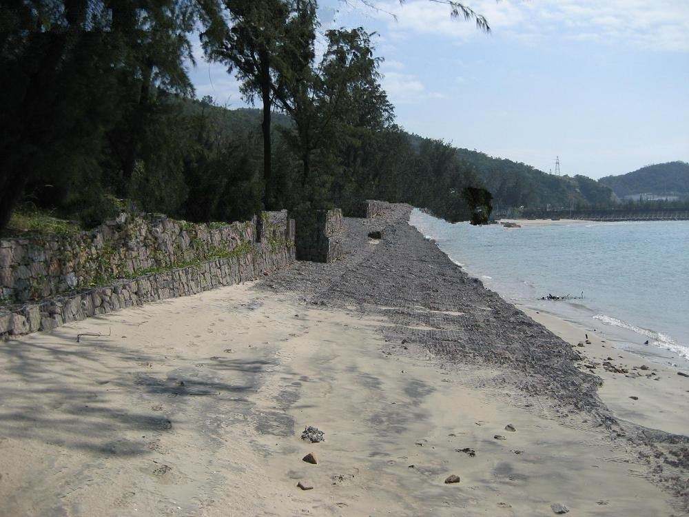 5非常優(yōu)越的透水性能。因填料之間大量空隙的存在為防護體前后水體的交換發(fā)明了條件。當綠濱墊防護體用作水下工程時,可實現(xiàn)河水與土體間的自然交換,為棲息在水中的微小動物、植物發(fā)明生存條件,有利于提高水體的自凈能力。當綠濱墊防護體用作水上工程時,有利于及時排除降雨后形成的地面入滲徑流,減輕墻后水壓力,增加工程的平安可靠性。