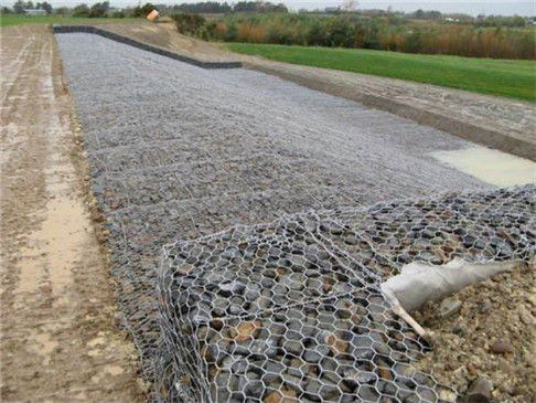 固濱籠具有固堤防沖刷的作用, 固濱籠工藝是指將特種鋼絲由專用機械編織成雙絞、蜂巢形網(wǎng)目的格網(wǎng)片,根據(jù)工程設(shè)計要求,裁剪、設(shè)計、組裝成箱籠并裝入塊石等填充料后連接成一體的結(jié)構(gòu),用作提防、路基防護工程。