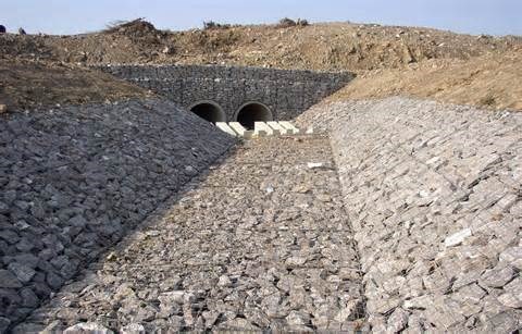固濱籠(格賓石籠)是由蜂巢形格網(wǎng)片,將特種鋼絲鍍膜后,由專用機械編織成的雙絞、蜂巢形網(wǎng)片組裝成箱籠,根據(jù)工程設(shè)計要求裁剪、制作、組裝成箱籠并裝入塊石等填充料后連接成一體的結(jié)構(gòu),是用做堤身、堤基及路基等防護工程的新型結(jié)構(gòu)。岸結(jié)構(gòu)形式可以分為擋墻、護坡、護底、護腳、水下拋石籠等。習(xí)慣上又將護坡、護底工程上常用的較薄的一種箱籠稱格賓網(wǎng)墊(高度一般在0.17—40cm)。擋墻、拋石籠常用的較厚的一種稱為格賓網(wǎng)箱(一般高度在50cm以上)。治理山坡、綠化植被及水土保持常用的則稱為格賓植被掛網(wǎng)。