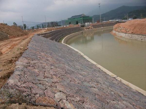 雷諾護(hù)墊采用以機(jī)編六邊形低碳鋼絲網(wǎng)面制成的網(wǎng)墊,在網(wǎng)墊內(nèi)填充合乎一定要求的石頭共同構(gòu)成的防護(hù)結(jié)構(gòu)。 一般的雷諾護(hù)墊的規(guī)格為0.15m-0.3m厚,2m寬,6m長(zhǎng)。 雷諾護(hù)墊由隔板分成若干單元格,為了加強(qiáng)雷諾護(hù)墊結(jié)構(gòu)的強(qiáng)度,所有的面板邊端均采用直徑更大的鋼絲。