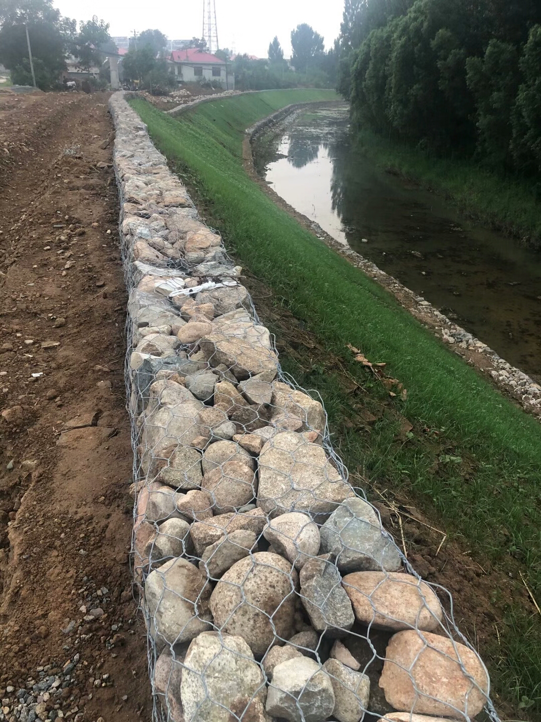 河堤,這樣減輕對河堤的損害。 在網(wǎng)箱上面,鋪撒一層土,可以生長草;自然也會沉降塵土,自然生長雜草等。 石籠網(wǎng)也可以用于引導(dǎo)河流水,河流一般會順著固有的河槽流動,河道可能有自然形成的彎曲的河道,如果發(fā)生洪水,水量巨大,水流湍急,水流會在慣性下,趨于直向流動,會猛烈地沖擊原來的河槽和堤壩,有可能使河流改道,那樣將造成巨大的災(zāi)難。