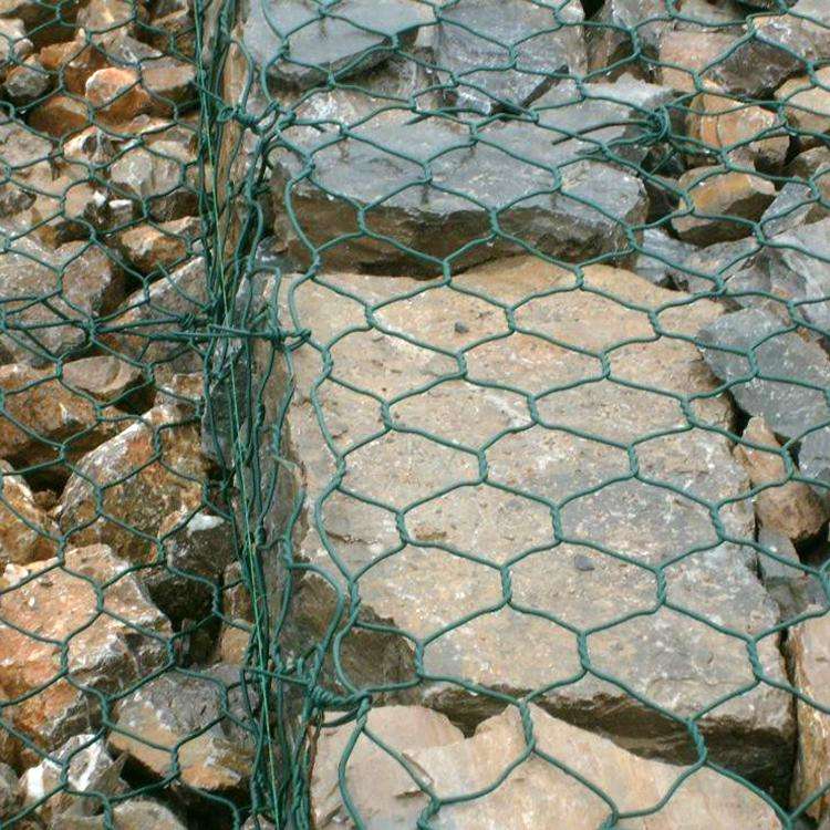 包塑石籠網(wǎng)是使用機器將金屬線材單向搓捻兩周編織的六角形網(wǎng)(六角網(wǎng)) 制成的網(wǎng)箱,厚度在0.15-0.5m(含0.5m),又稱石籠網(wǎng)箱和石籠護墊,石籠網(wǎng)墊由隔板分成若干單元格,為了加強石籠網(wǎng)墊結(jié)構(gòu)的強度,所有的面板邊端均采用直徑更大的鋼絲。